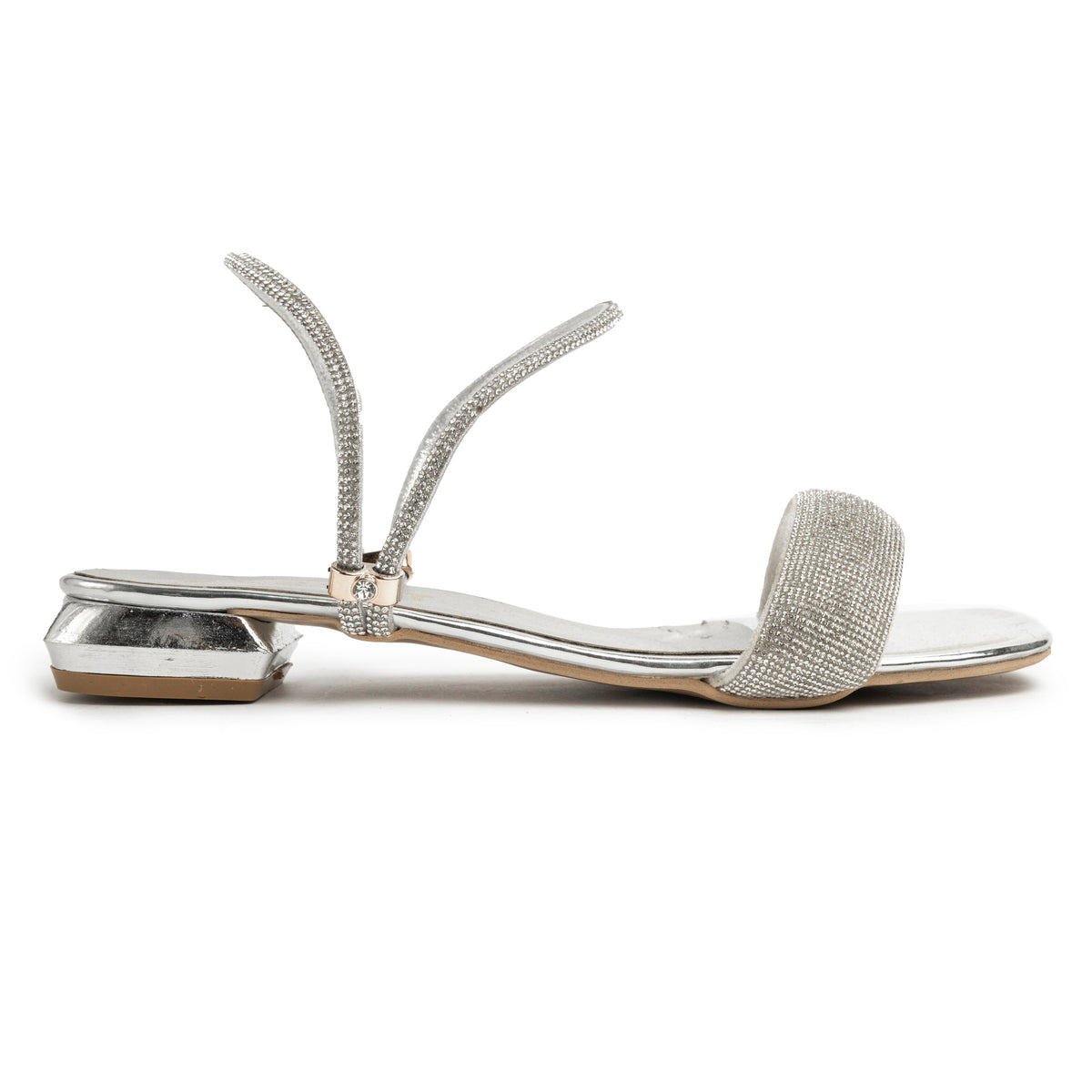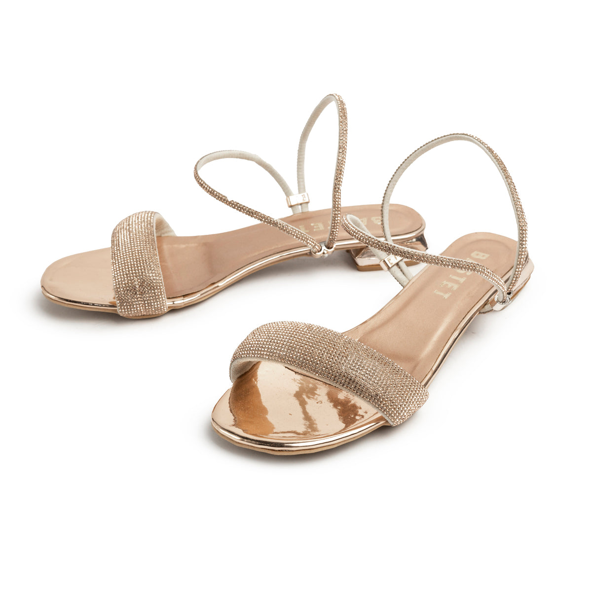 | "Isis" Women's Low-Heel Dress Sandals – Open Toe Rhinestone Strappy Flats for Evening Wear |