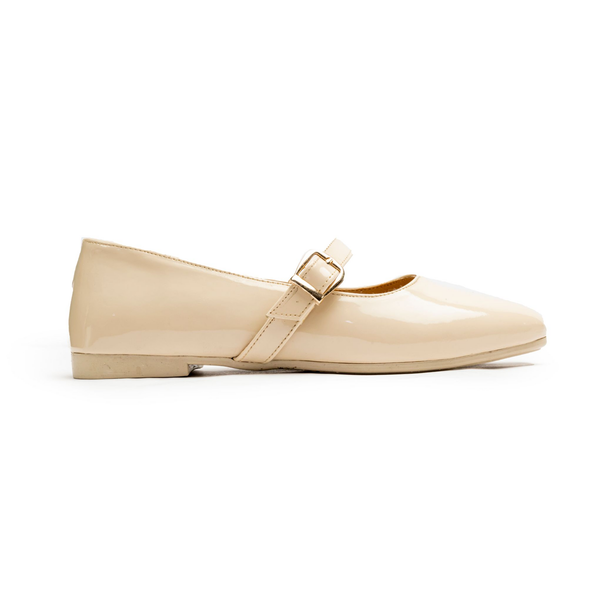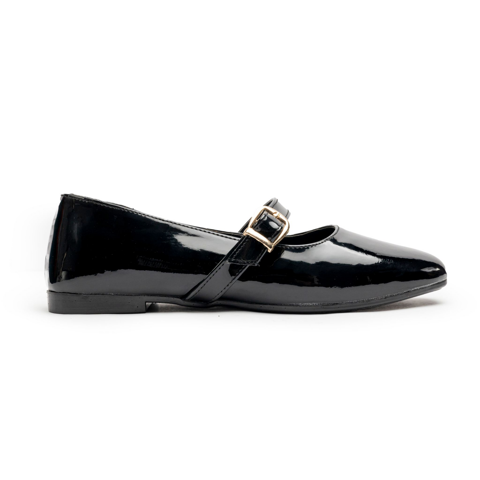 Closure: Adjustable Mary Jane strap with metal buckle for a secure fit