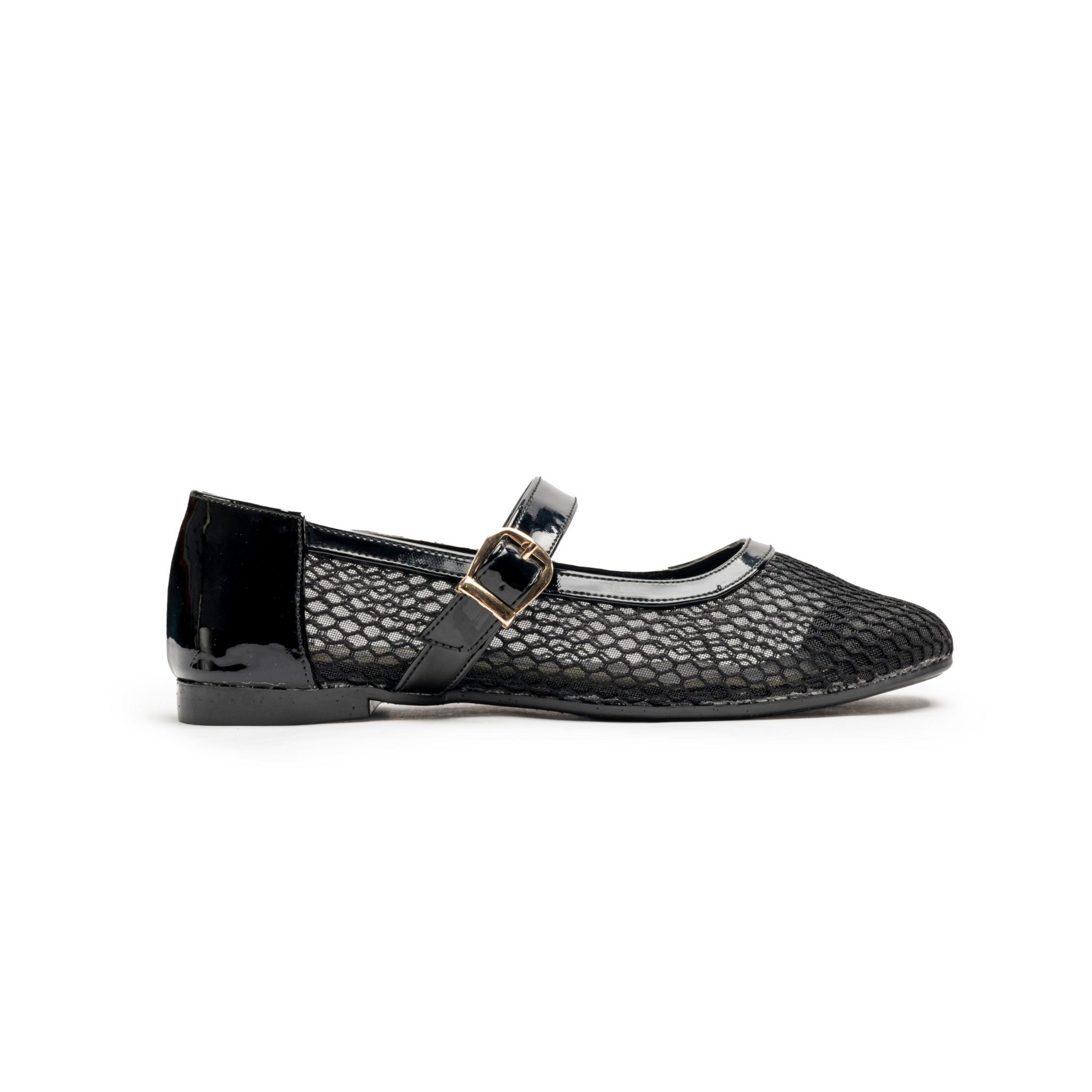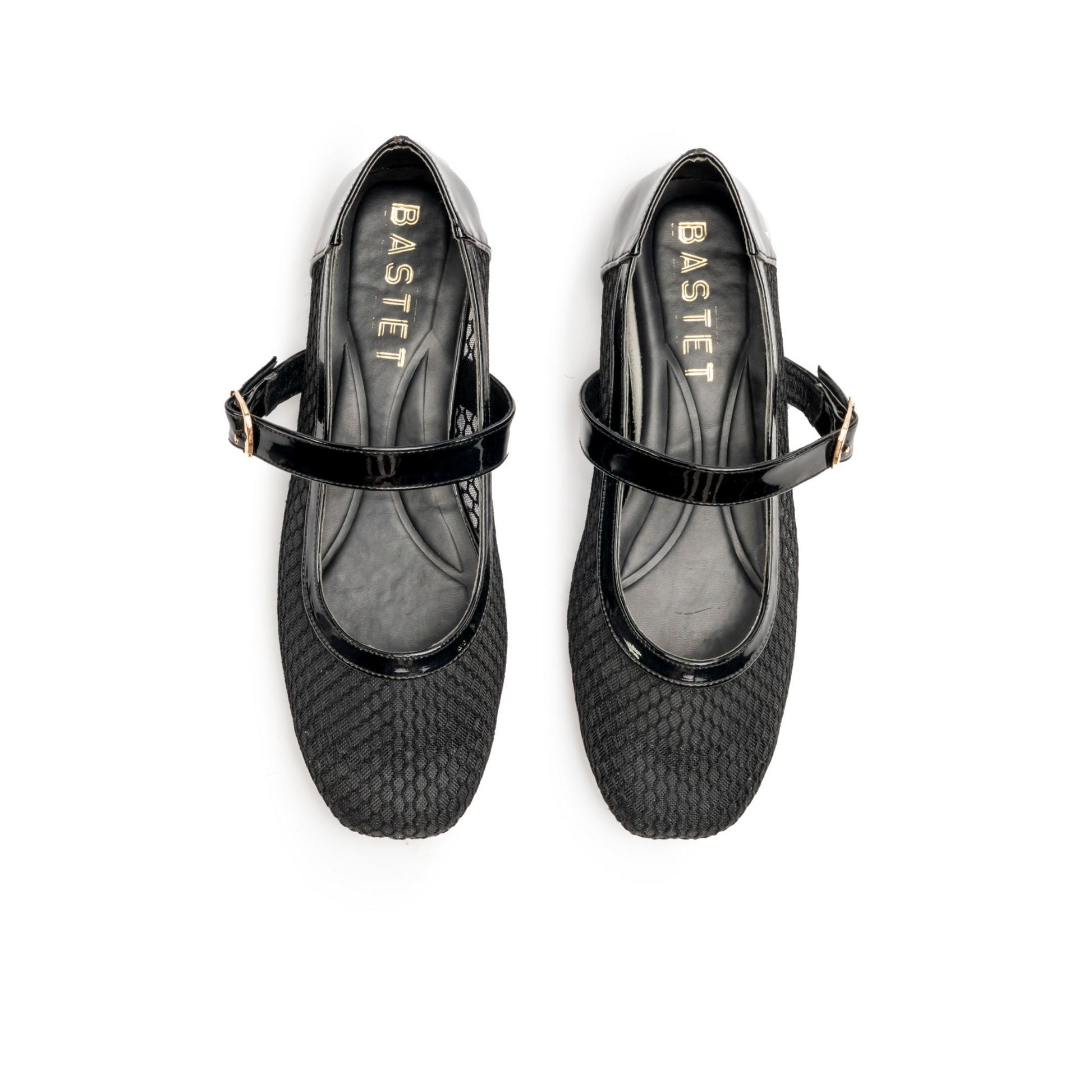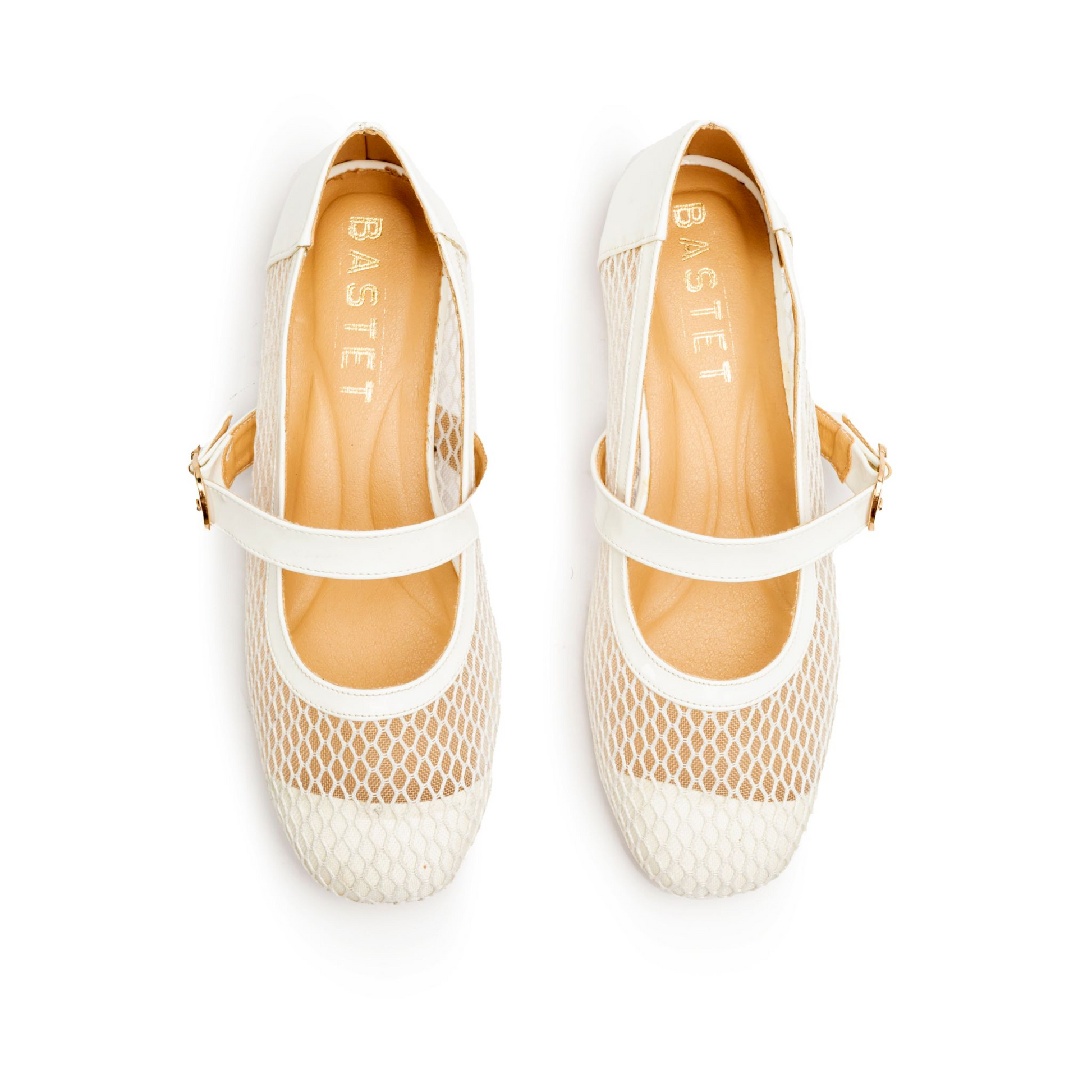 Elegant Mary Jane flats crafted from premium Falea mesh with PU trim, designed for breathability and comfort with a modern chic style.
