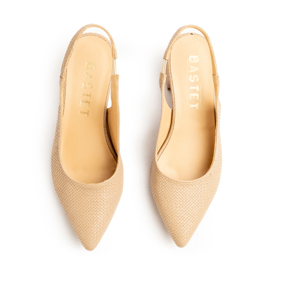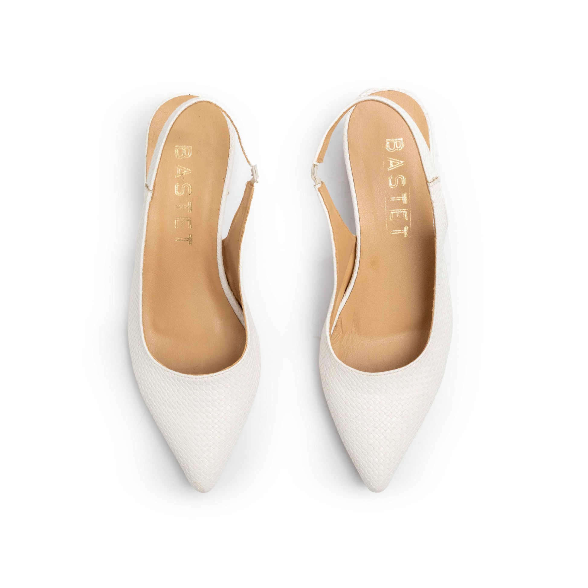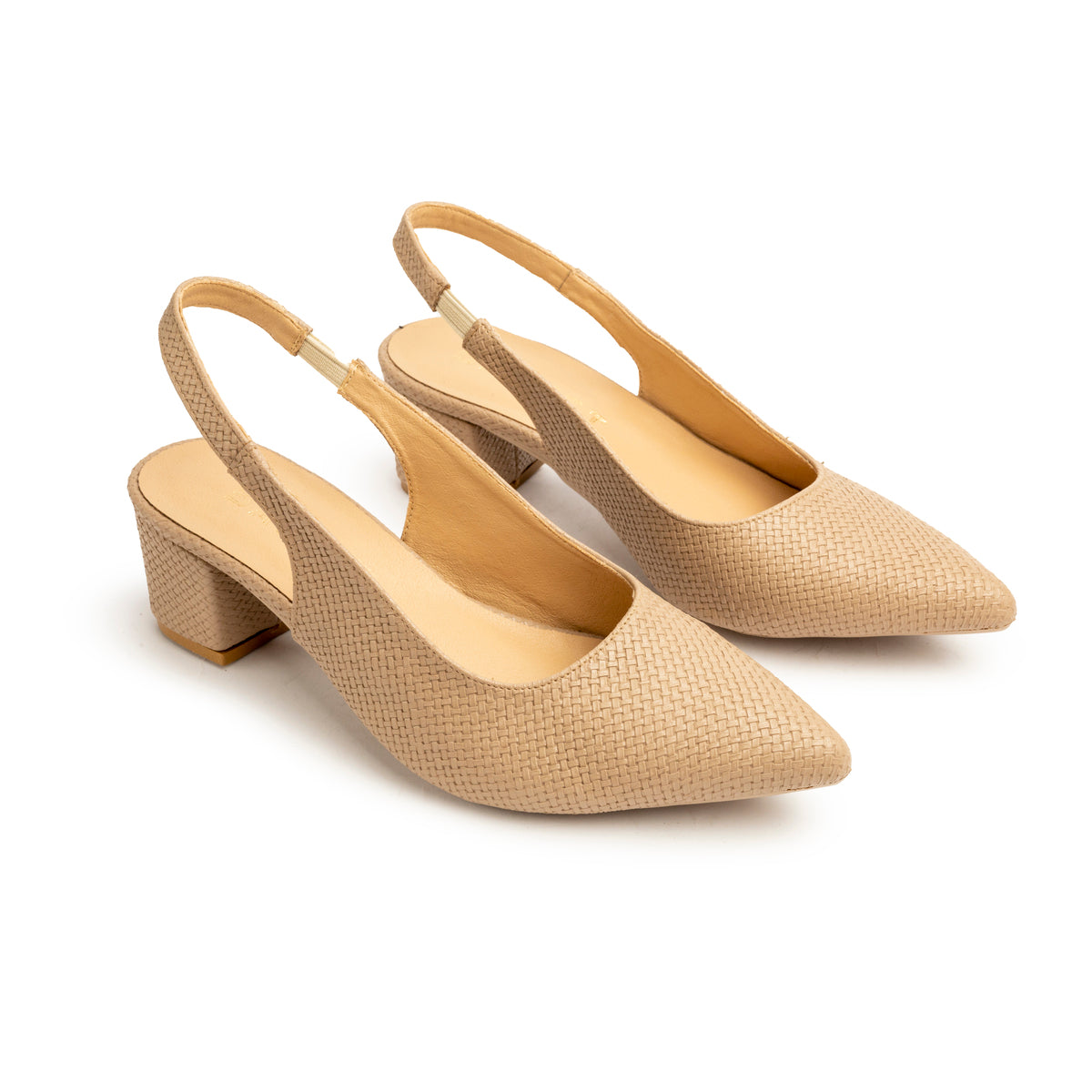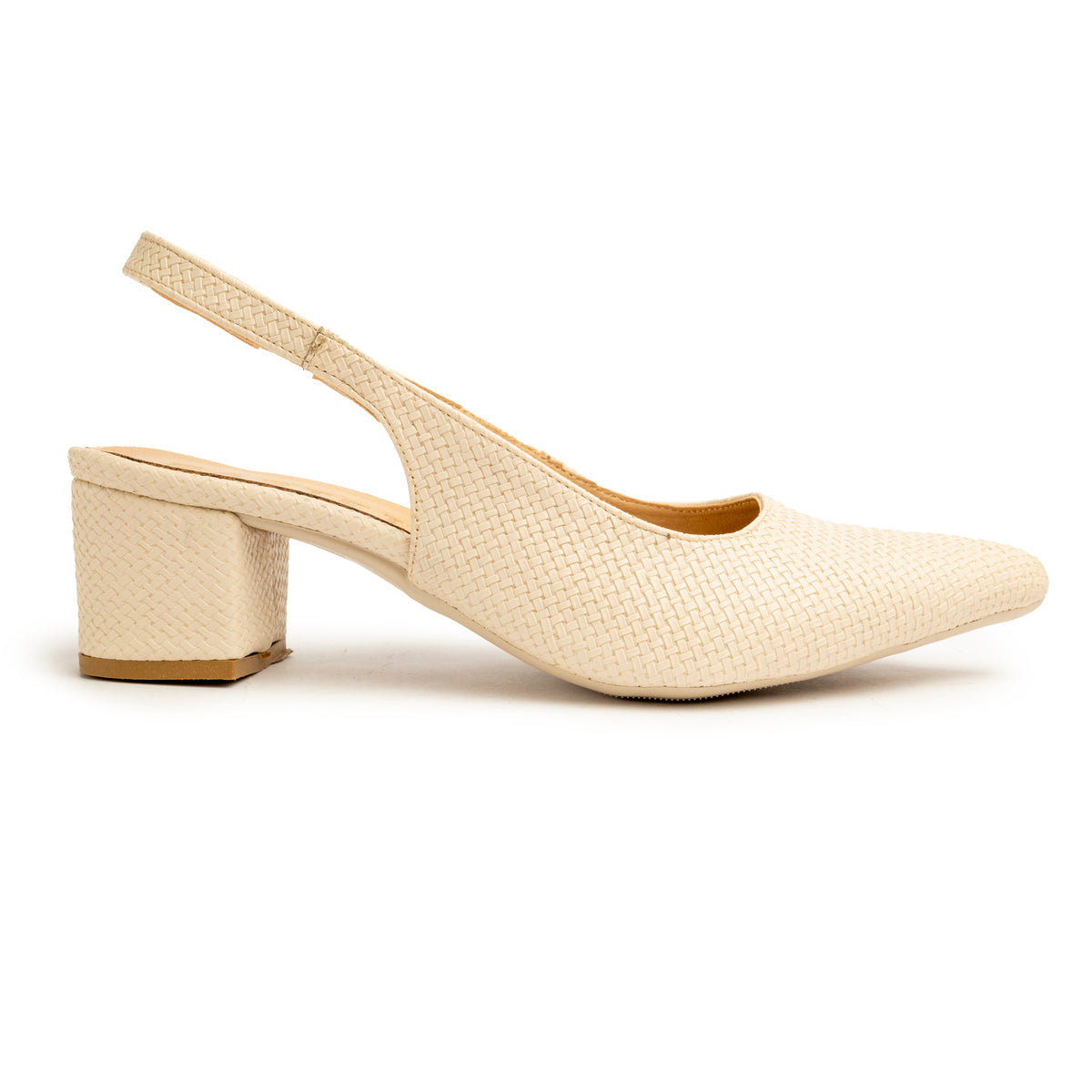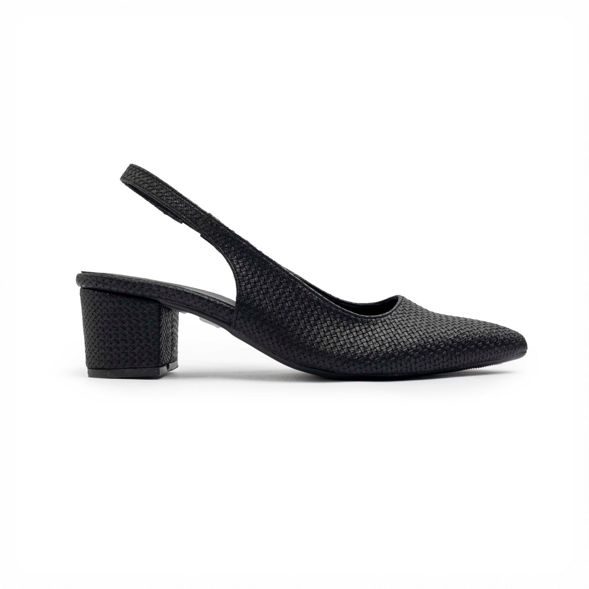 | Lightweight and practical with elegant slingback comfort - Slingback design for easy wear - 5cm comfortable block heel - Closed pointed toe for elegant look - Soft PVC sole for flexibility - Textured synthetic upper for a premium touch |