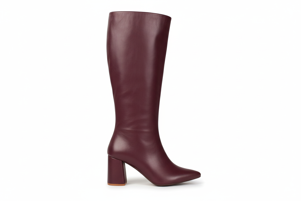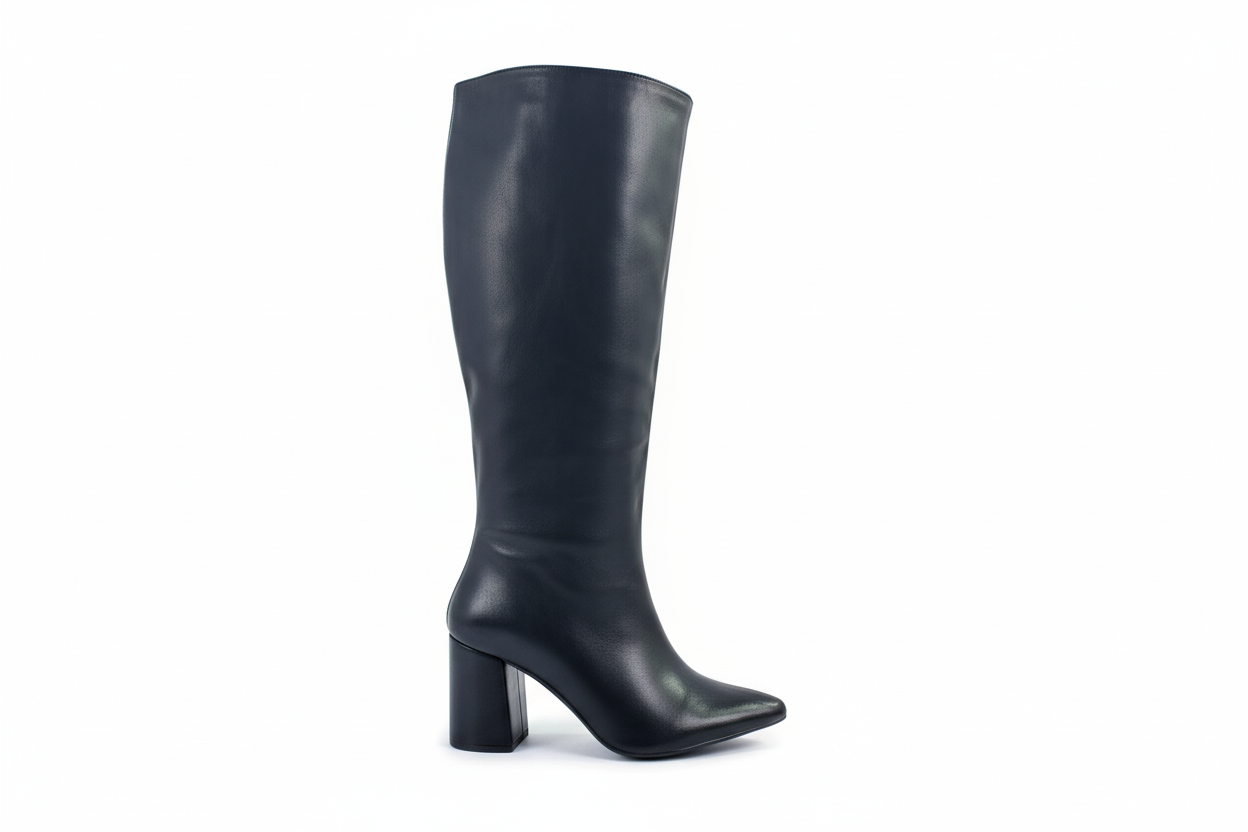 A refined knee-high boot with a sleek, uninterrupted silhouette and a softly contoured shaft. Designed with a stable high heel that adds elegance without sacrificing balance, this model delivers a confident, polished look suitable for