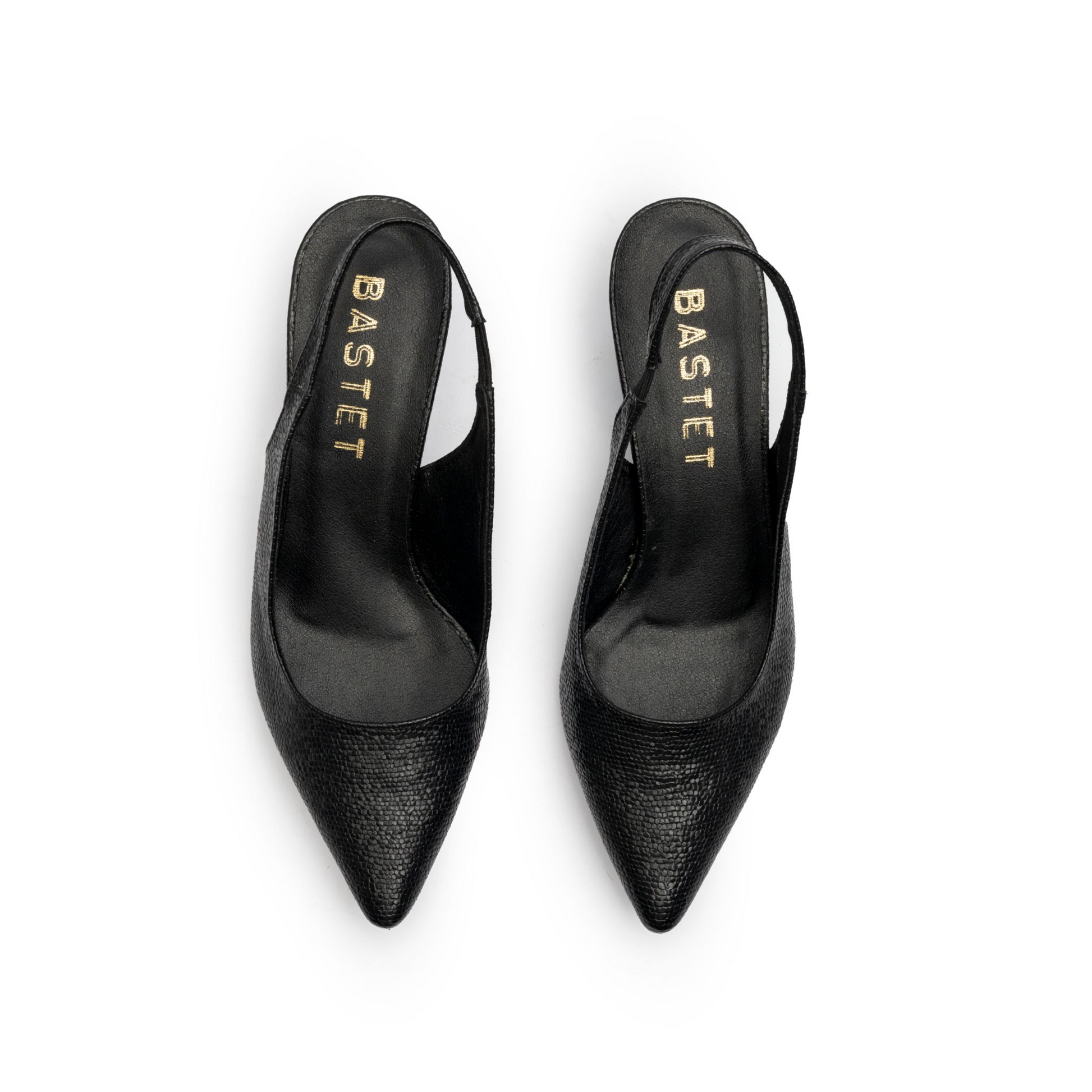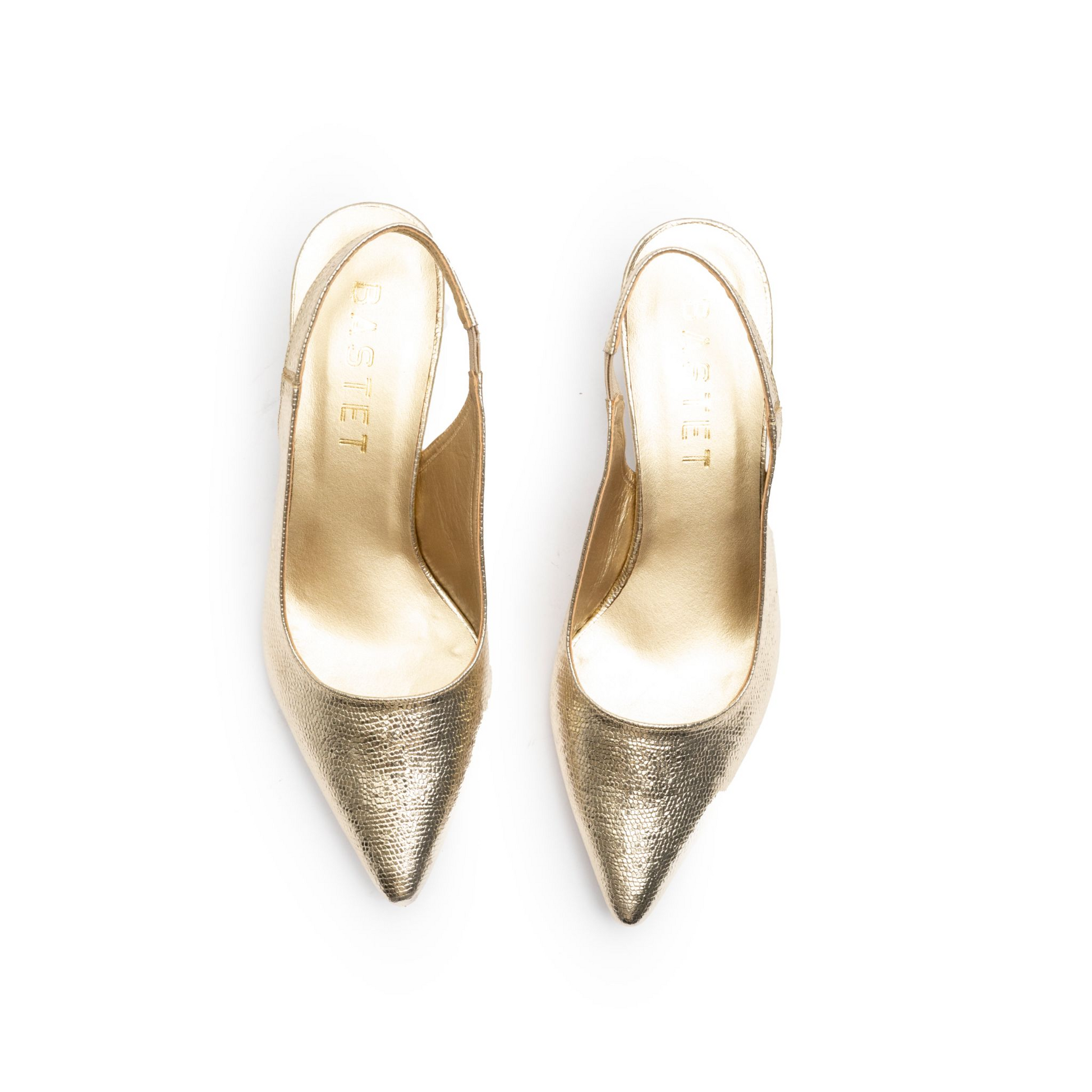 -heel slingback pumps with a chic metallic texture and a comfortable 5 cm block heel. Designed for all-day elegance and stability.