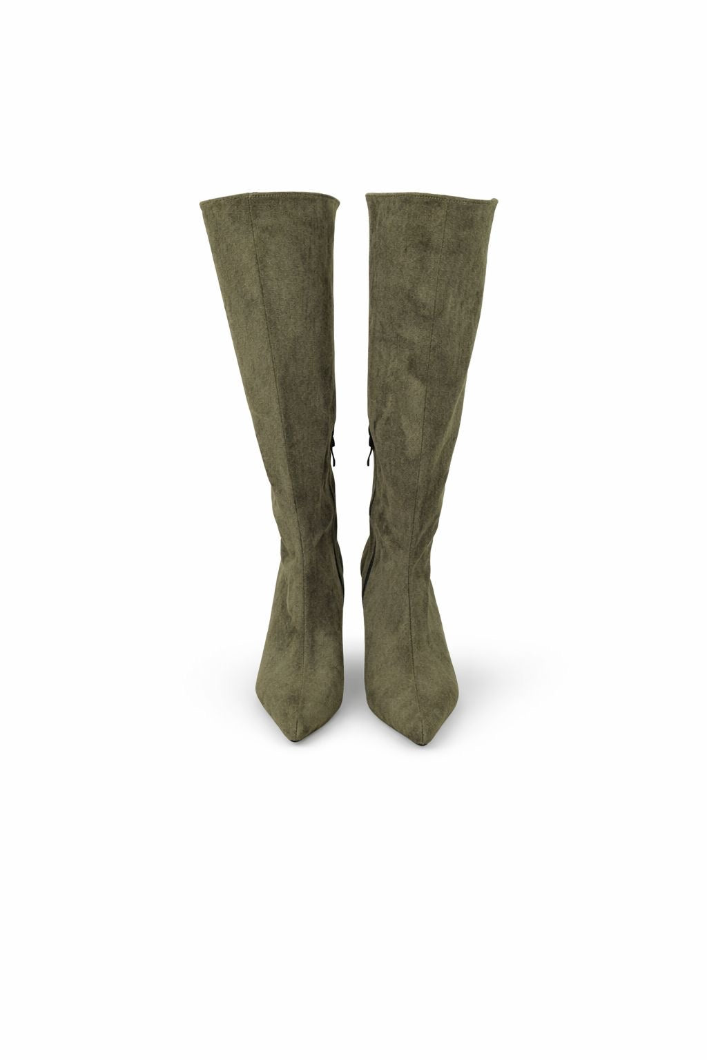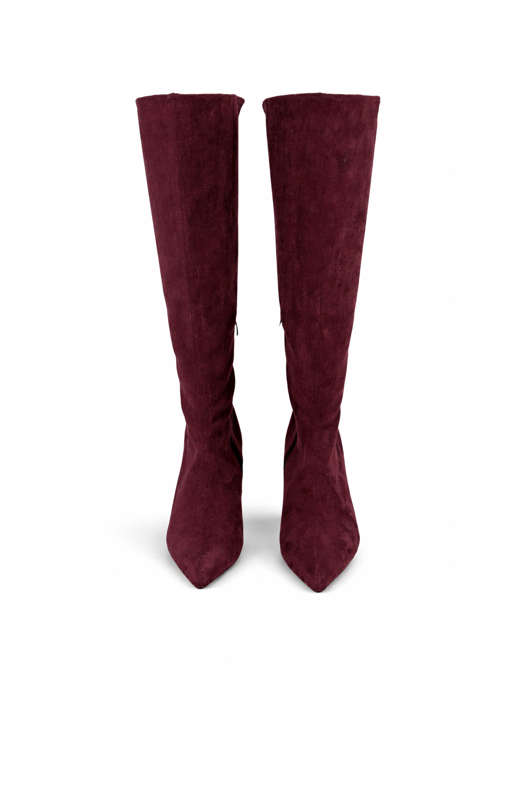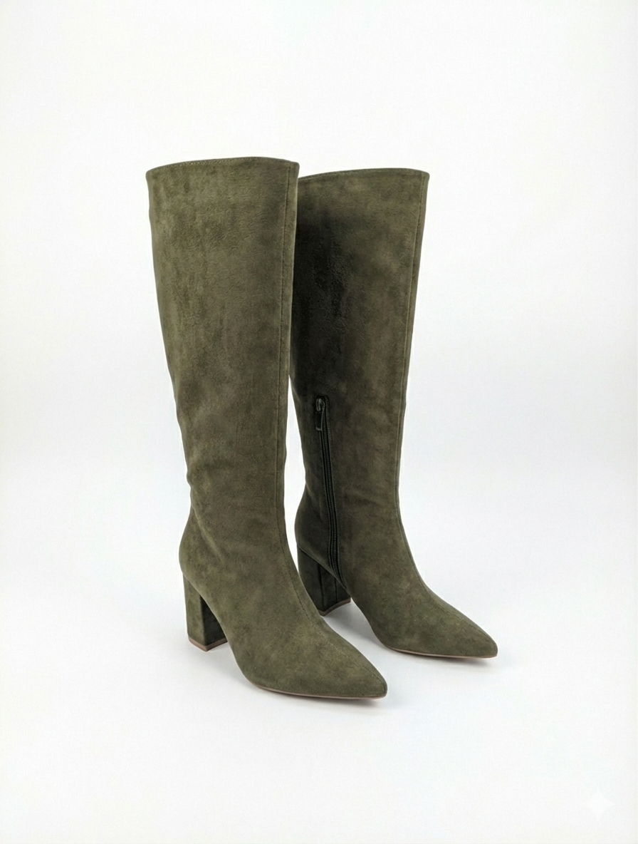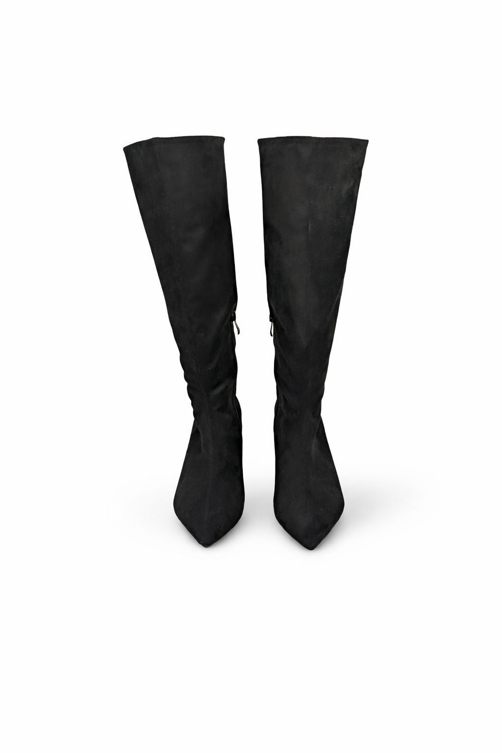 A sleek knee-high boot with a clean, structured shaft and a balanced block heel that offers both elegance and stability. The smooth silhouette and pointed toe create a timeless design that transitions effortlessly from everyday wear to refined evening looks.
